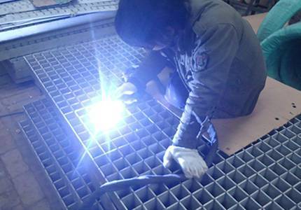 i型钢格板是由负荷扁钢和横杆按一定间距经纬排列,采用200吨液压电阻焊自动化设备焊接成原板,经切割,开孔,包边等工序加工而成客户要求的产品。